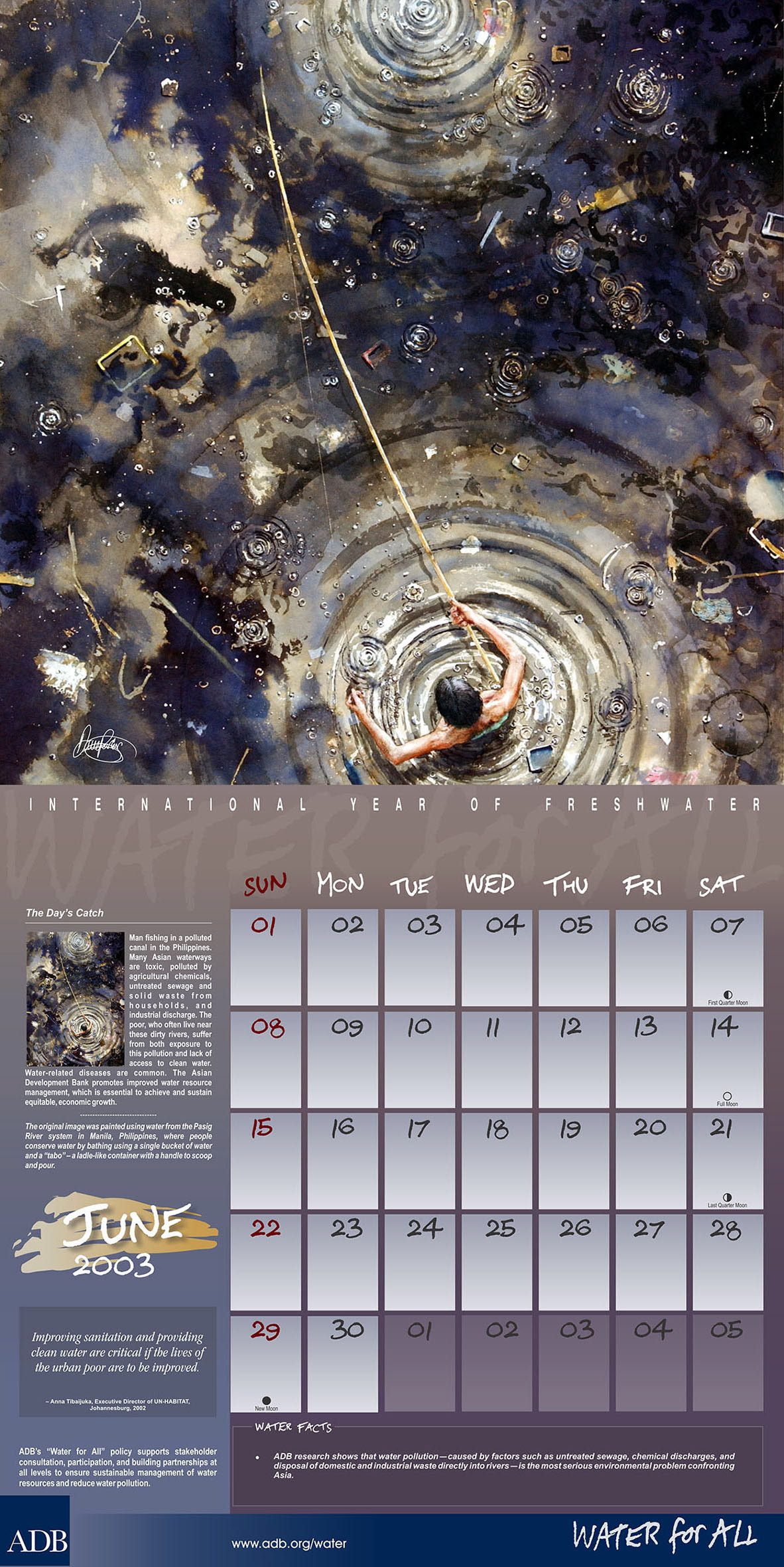 ADB’s “Water for All” 2003 Calendar. This calendar is part of ADB's “Water for All” advocacy campaign and a recipient of an IABC's Gold Quill Award in 2003. Done in collaboration with Penny Poole, Dave Parker and Ronnie Elefaño.
